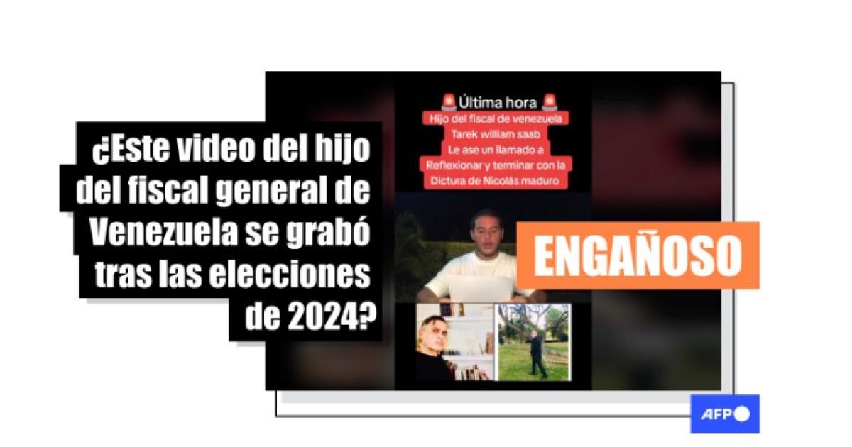 “Ultima HoraHijo del fiscal de venezuela Tarek william saab le ase un llamado a reflexionar y terminar con la dictadura de Nicolás maduro”, dice un texto sobrepuesto en un video compartido en TikTok y Facebook.
