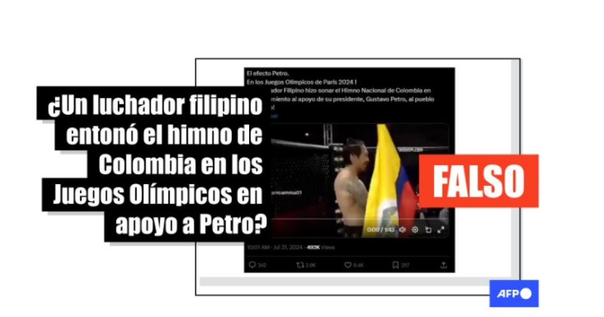 “El efecto Petro. En los Juegos Olímpicos de París 2024 ! Un Luchador Filipino hizo sonar el Himno Nacional de Colombia en agradecimiento al apoyo de su presidente, Gustavo Petro, al pueblo Palestino!”, dice una de las publicaciones que comparten el video en Facebook (1, 2), X e Instagram.