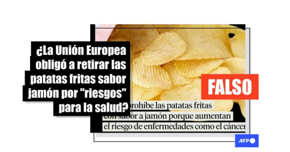 Otra publicación en Facebook asegura que “La Unión Europea ha prohibido las patatas fritas con sabor a jamón debido al riesgo aumentado de cáncer”, y viene acompañada de una ilustración de otro medio de comunicación.