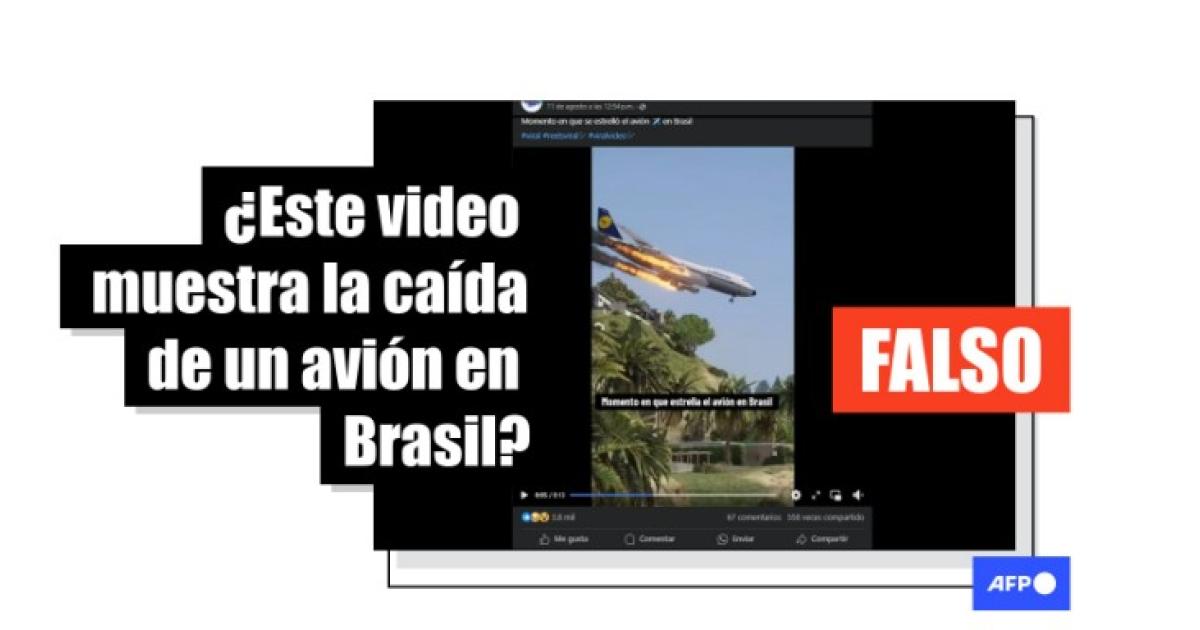 “Momento en que estrella el avión en Brasil”, se lee sobre un video compartido en Facebook (1, 2) en el que se ve a una aeronave, con el nombre de la compañía aérea alemana Lufthansa, estrellándose sobre una urbe.