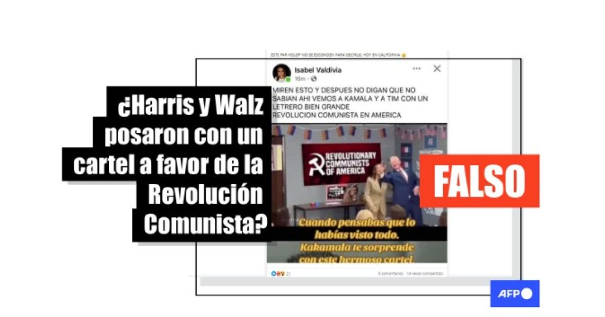 Harris y Walz no posaron con un letrero comunista en un colegio en Arizona, el cartel fue manipulado