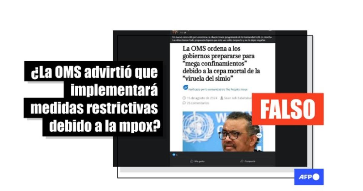 En diálogo con la AFP, Mijail Santos Luján, miembro de la oficina de comunicación del organismo, explicó: “Estas afirmaciones son falsas. La OMS no puede ni ha ordenado a los gobiernos que se preparen para ‘megaconfinamientos’ o cualquier tipo de confinamiento debido al mpox. Como organización científica y técnica, la OMS proporciona asesoramiento técnico y apoyo a sus 194 Estados miembros. Los países tienen la soberanía para tomar decisiones y acciones relacionadas con la salud de sus poblaciones”.