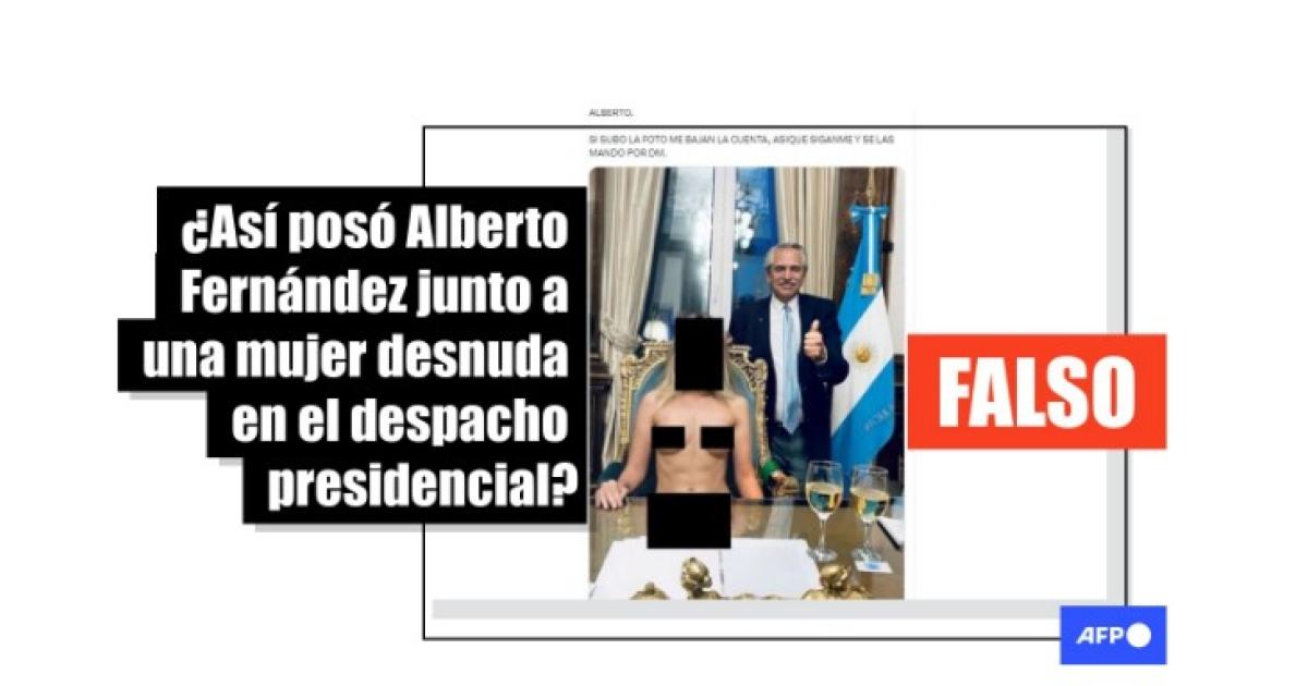 La imagen del expresidente argentino Alberto Fernández junto a una mujer desnuda es un montaje