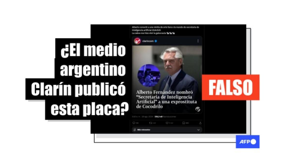La placa no se encuentra en las cuentas en X, Facebook e Instagram de Clarín, y la supuesta noticia tampoco se halla en su sitio web.