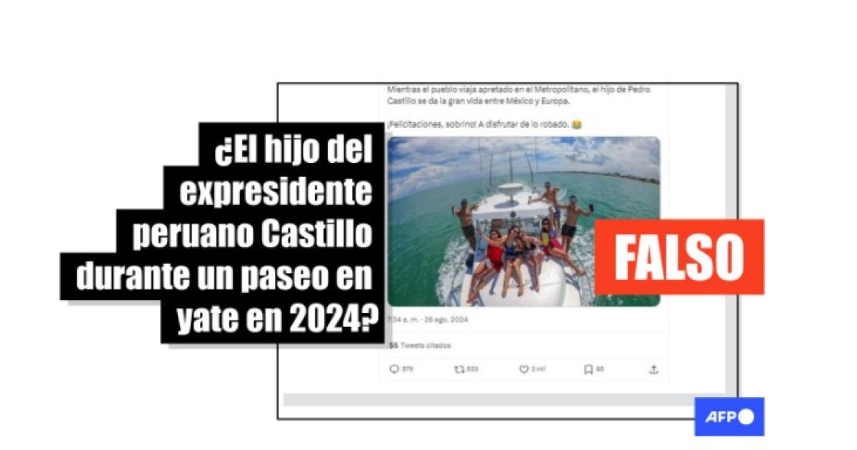 Imagen publicitaria de 2021 circula como si mostrara al hijo de Castillo en un paseo en yate en 2024