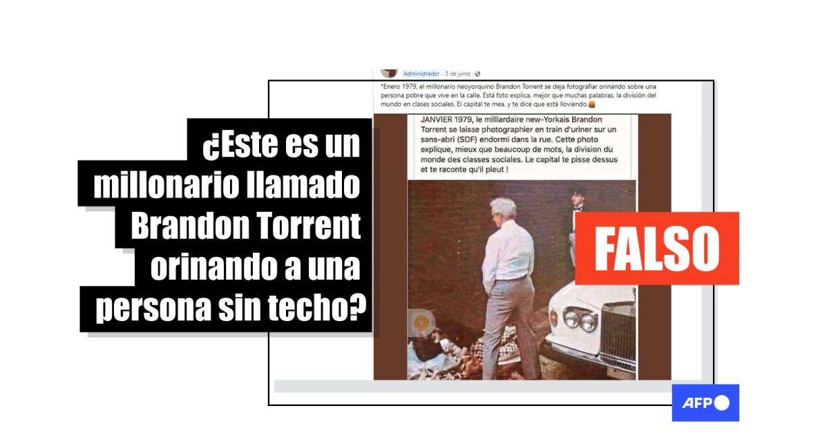 Una instantánea que supuestamente muestra a un “millonario neoyorquino” llamado Brandon Torrent orinando sobre un hombre en la calle es una puesta en escena. La imagen, que circula en redes sociales desde 2019, se ha compartido más de 6.000 veces en agosto de 2024, con la afirmación de que explica “la división del mundo en clases sociales”. En realidad, la escena fue realizada con actores y, según explicó uno de sus creadores a la AFP, intentó replicar un póster satírico.