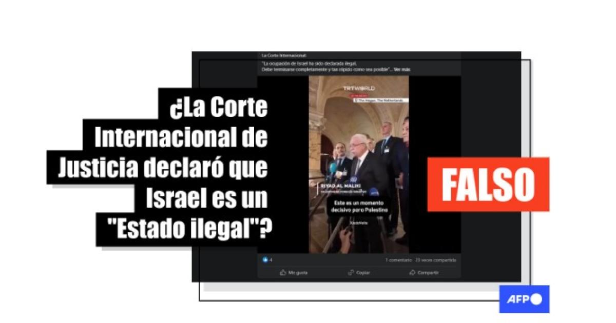 “ÚLTIMA HORA: La Corte Internacional ha declarado a Israel un estado ilegal”, publica un usuario en X junto a un video en el que el canciller palestino afirma: “La ocupación de Israel fue declarada ilegal por la Corte Mundial, que ha estipulado que debe terminarse completamente y lo más rápidamente posible”.