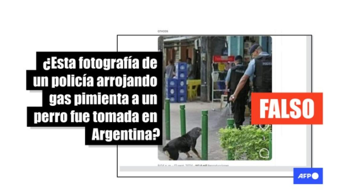 En ese contexto comenzó a circular la fotografía del policía arrojando gas pimienta a un perro. Pero esta no fue tomada en Argentina.