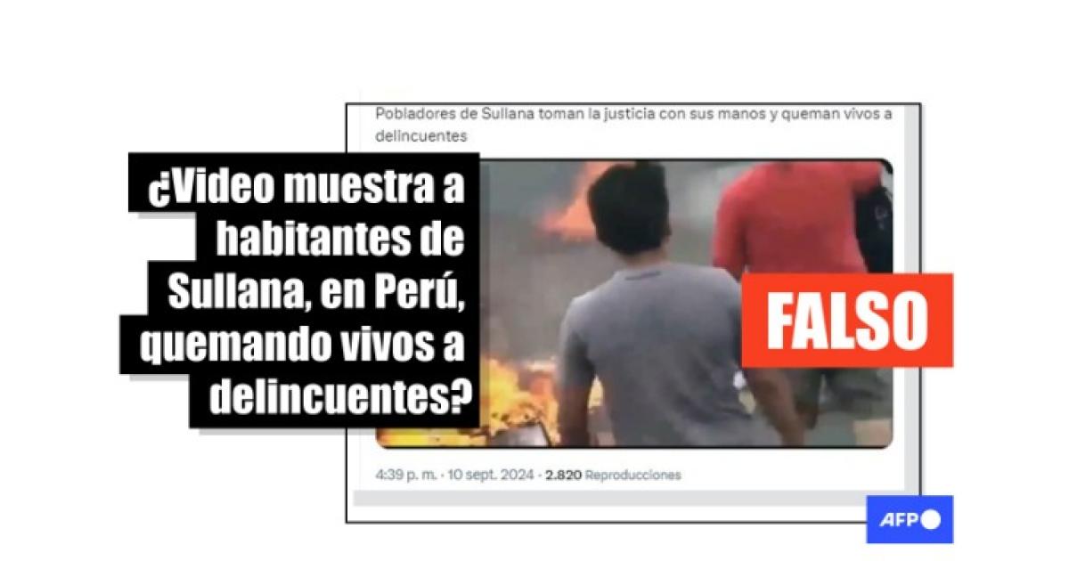 La secuencia circula en Facebook con la misma afirmación de que el hecho ocurrió en la ciudad de Sullana (Piura), en el norte de Perú. “Sullana Piura, choros motorizados son quemados vivos por decenas de indignados vecinos”, afirman usuarios.