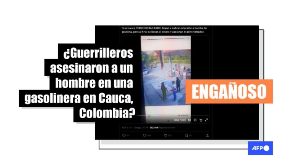 “Esto pasó en Cauca, los terroristas de las farc extorsionan una estación de gasolina, el día que van a cobrar matan cobardemente al administrador” señala un usuario en X que comparte un video grabado por la cámara de seguridad de una gasolinera. En él se ve a cuatro hombres uniformados disparando varias veces a otro hombre, que acaba desplomado en el suelo.