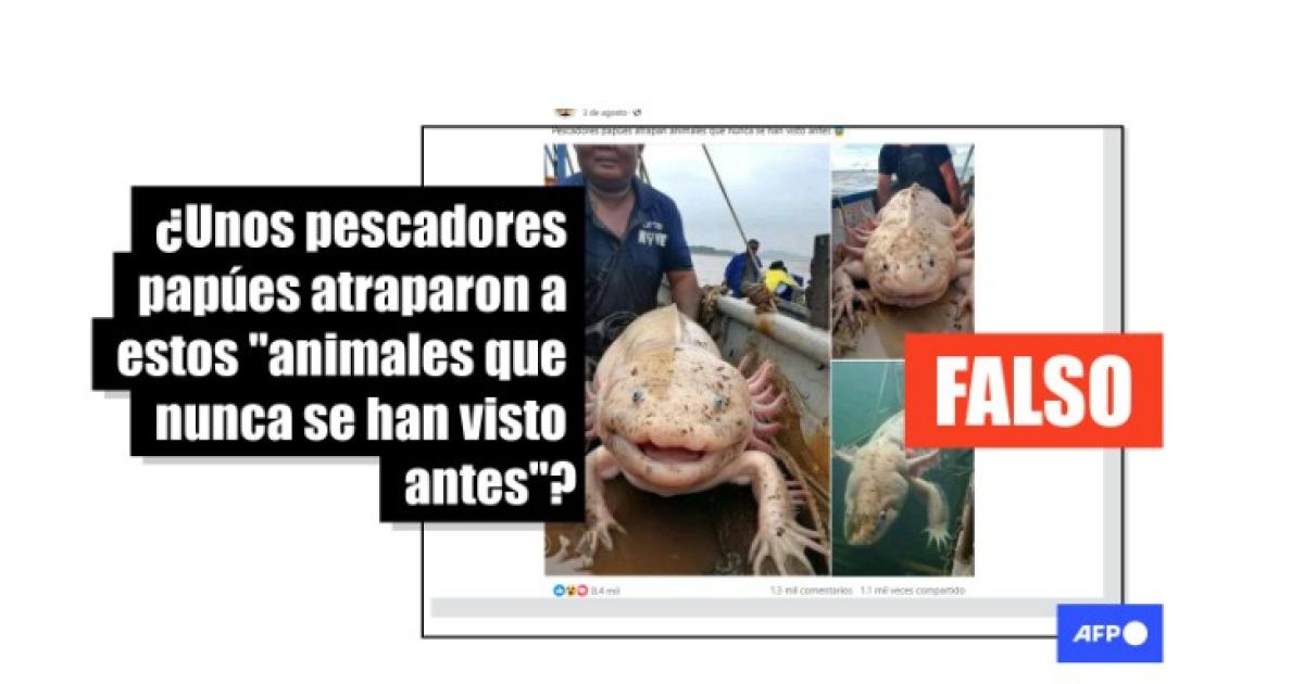 “Pescadores papúes atrapan animales que nunca se han visto antes”, afirman las publicaciones en Facebook, X e Instagram.