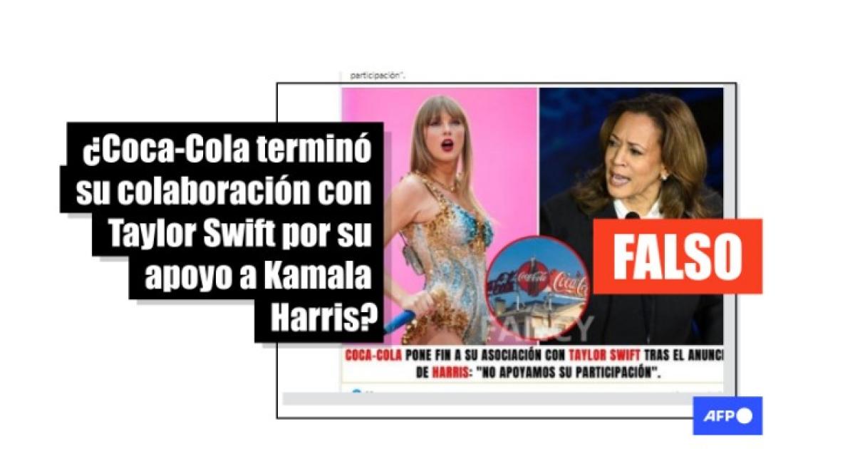 Desde que se pronunció a favor de Harris, Swift se convirtió en blanco de desinformación. Entre los mensajes virales falsos sobre la cantante, circula la supuesta cancelación de su relación comercial con la marca de refrescos Coca-Cola.
