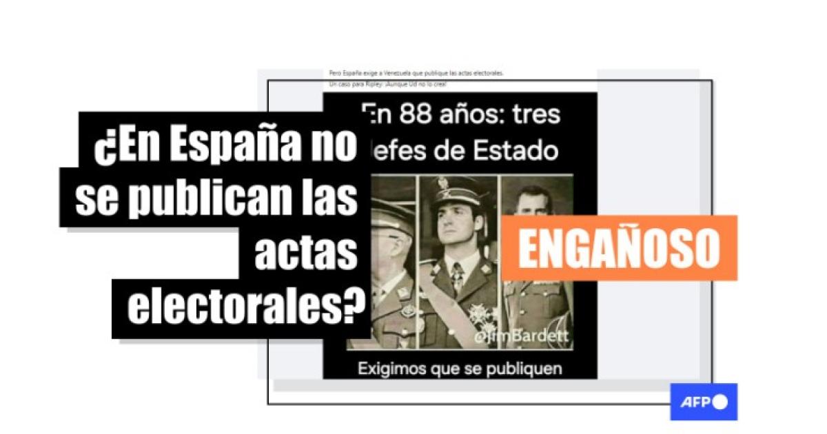 “En España está prohibido publicar las actas Electorales por la Ley de ese pais, pero pide a Venezuela que publique las actas! La hipocresía”, recoge un vídeo compartido en TikTok. En él, un hombre asegura haber realizado una petición de transparencia para acceder a las actas, pero se le habría denegado.