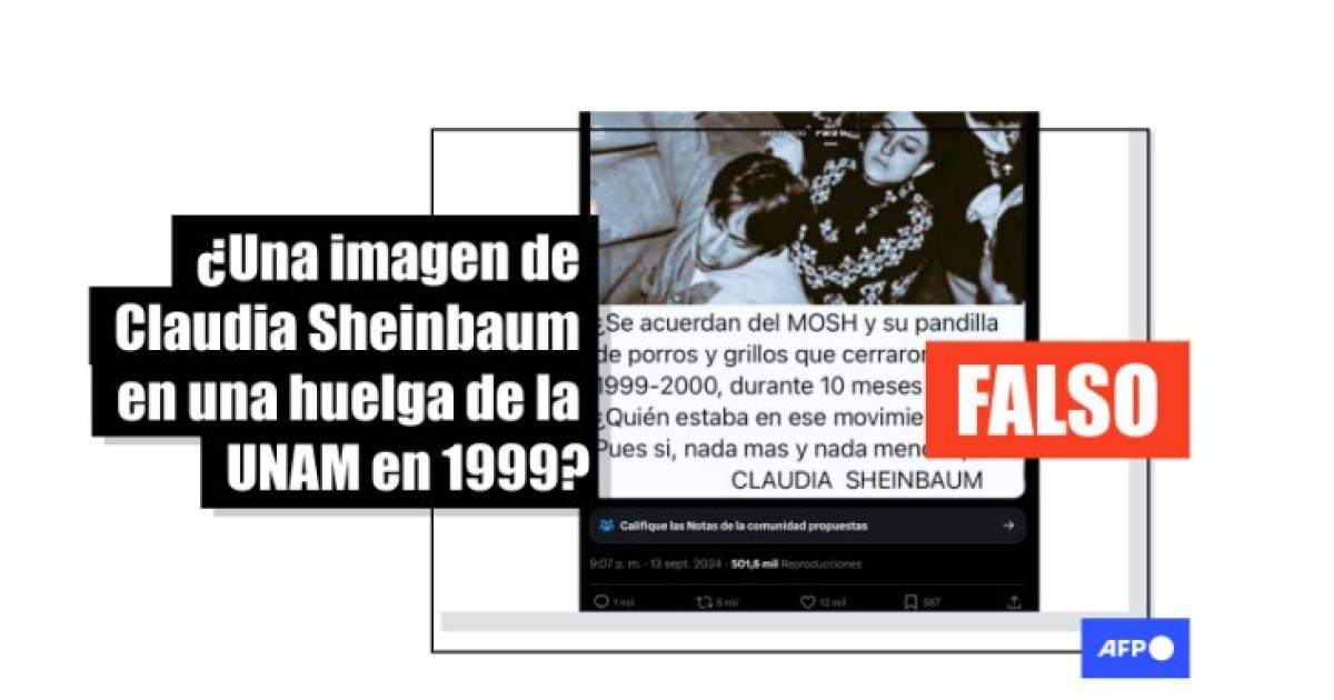Sheinbaum, física e ingeniera ambiental, estudió su licenciatura, maestría y doctorado en la UNAM y fue activista estudiantil en esa institución, pero la foto viral no tiene relación con la huelga de 1999 a la que se refieren las publicaciones virales.