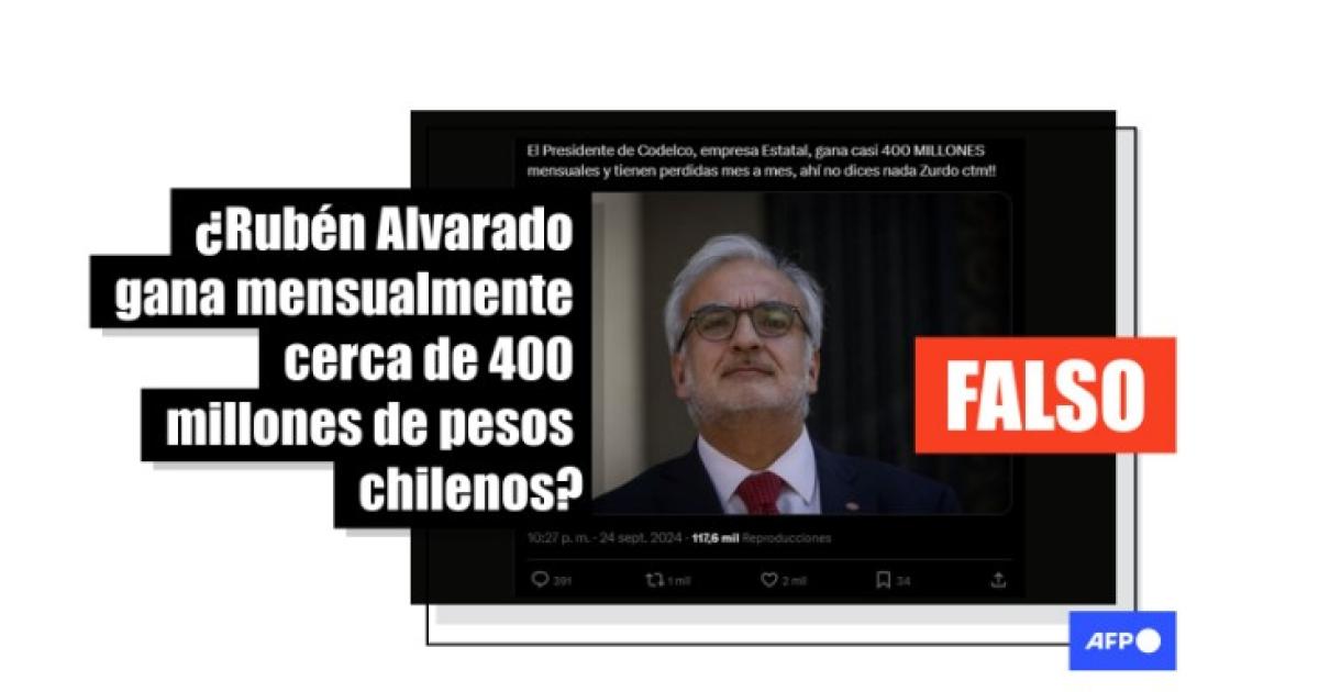 “El presidente de Codelco, empresa Estatal, gana casi 400 MILLONES mensuales y tienen perdidas mes a mes, ahí no dices nada Zurdo ctm!!”, se lee en una publicación en Facebook. Mensajes similares circulan también en X y TikTok.