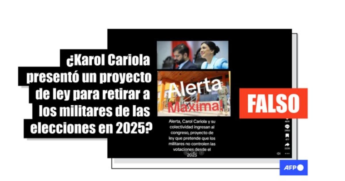 “Alerta, Carol Cariola y su colectividad ingresan al congreso, proyecto de ley que pretende que los militares no controlen las votaciones desde el 2025”, se lee en una publicación en TikTok. Mensajes similares se compartieron también en Facebook y X.