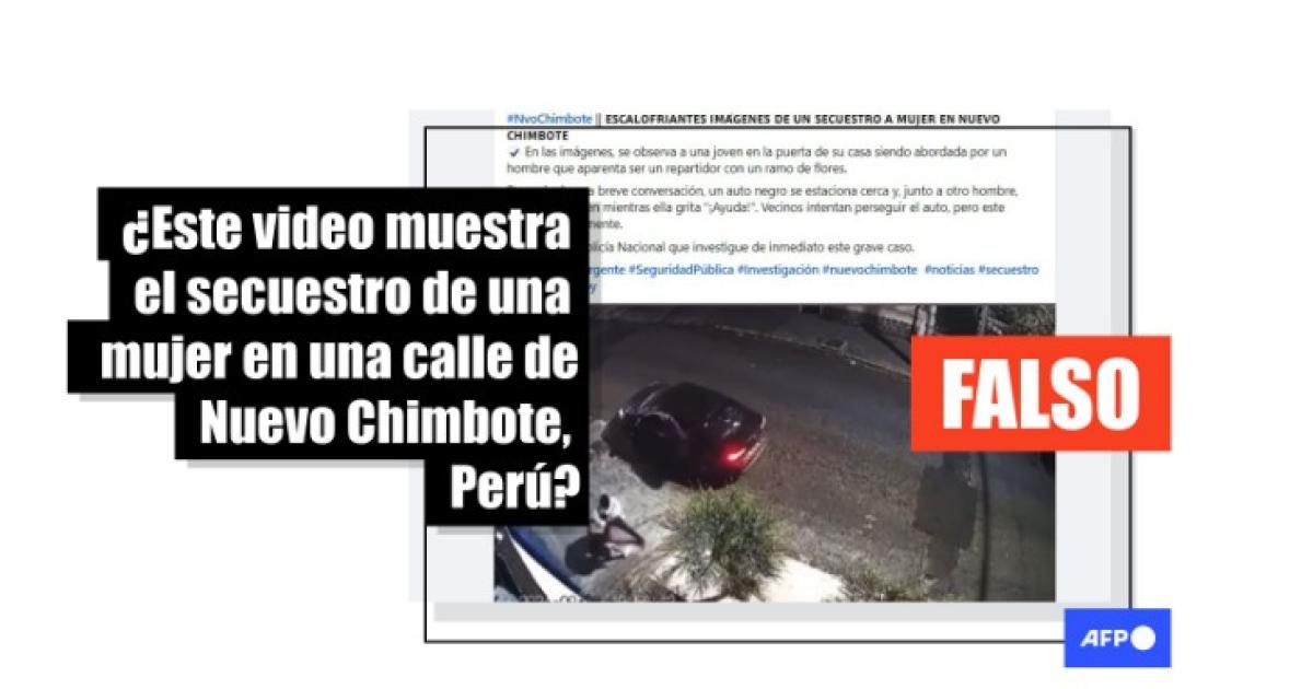 “ESCALOFRIANTES IMÁGENES DE UN SECUESTRO A MUJER EN NUEVO CHIMBOTE”, se lee en publicaciones en Facebook e Instagram.
