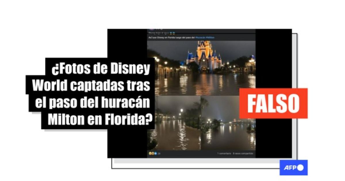 “Disney bajo el agua Así luce Disney en Florida luego del paso del huracán Milton”, afirman publicaciones en Facebook, Instagram, Threads, X y TikTok.
