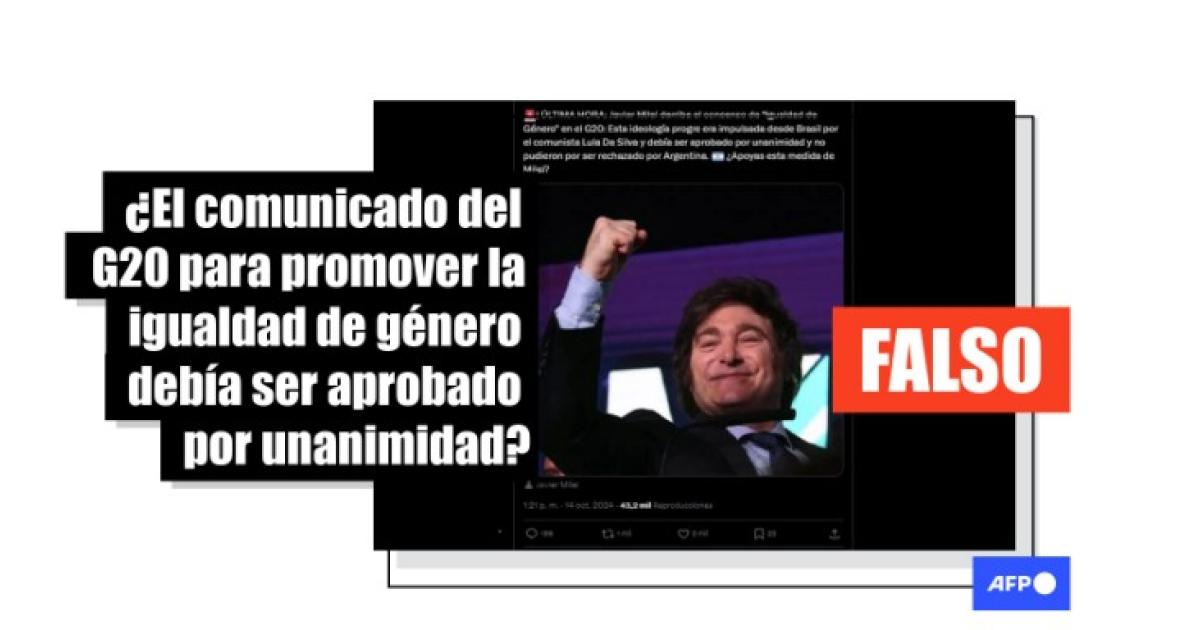El contenido comenzó a circular el 11 de octubre de 2024, luego de que el Grupo de Trabajo sobre Empoderamiento de las Mujeres del G20 emitiera una “Declaración sobre la igualdad de género y el empoderamiento de las mujeres”.