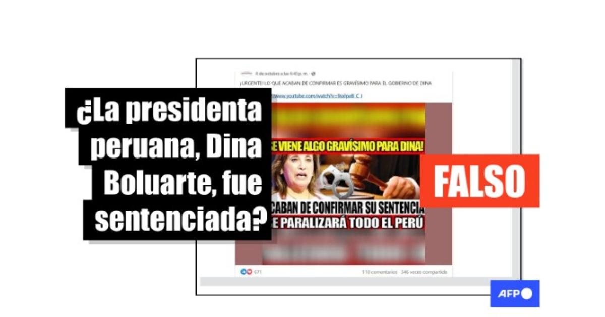 “Se viene algo gravísimo para Dina. Acaban de confirmar su sentencia”, se lee en una captura de pantalla compartida por usuarios en Facebook (1, 2) junto a un enlace a un video.