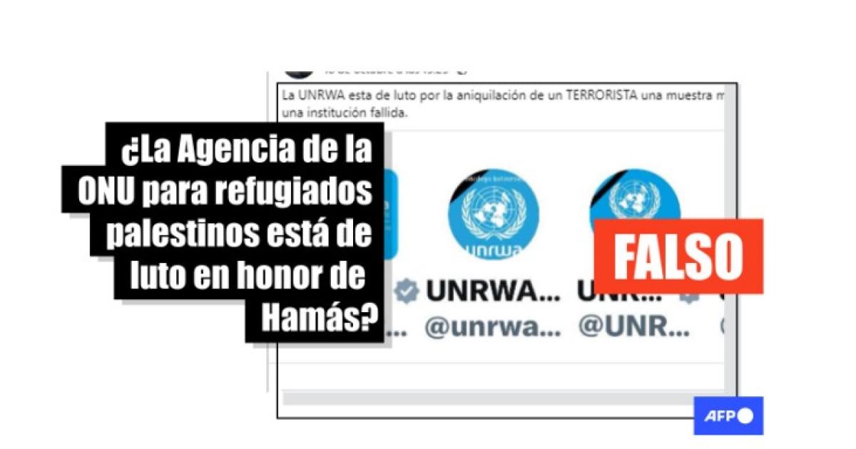 “Es falso” que la UNRWA pusiera la señal de luto en sus redes sociales por la muerte del líder de Hamás, aclaró la directora de comunicaciones de la agencia, Juliette Touma, en respuesta a AFP Factual el 21 de octubre de 2024.