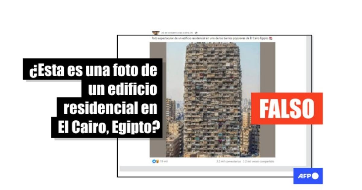 “foto espectacular de un edificio residencial en uno de los barrios populares de El Cairo Egipto”, señalan publicaciones acompañadas de la imagen en Facebook (1, 2), X, Instagram y TikTok.