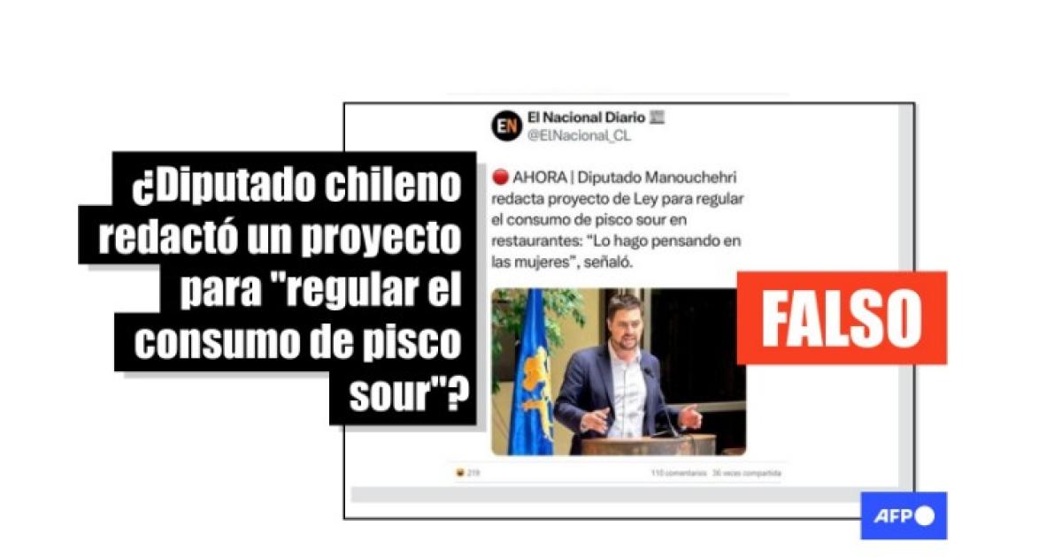 “Diputado Manouchehri redacta proyecto de Ley para regular el consumo de pisco sour en restaurantes” señala una publicación en X de “El Nacional Diario”, cuenta que se describe como “medio independiente”.