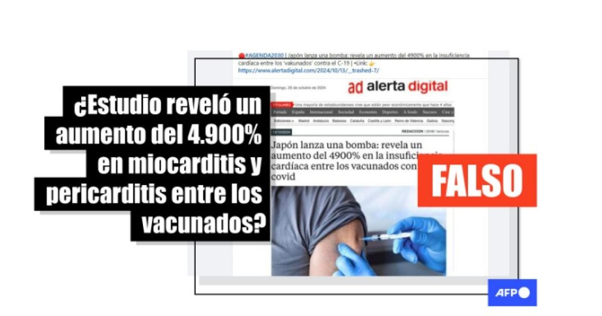 “Japón lanza una bomba: revela un aumento del 4900% en la insuficiencia cardíaca entre los vacunados contra el covid”, titula un artículo compartido en Facebook, Instagram y X, que fue publicado el 13 de octubre de 2024 en un sitio web llamado “alerta digital”.