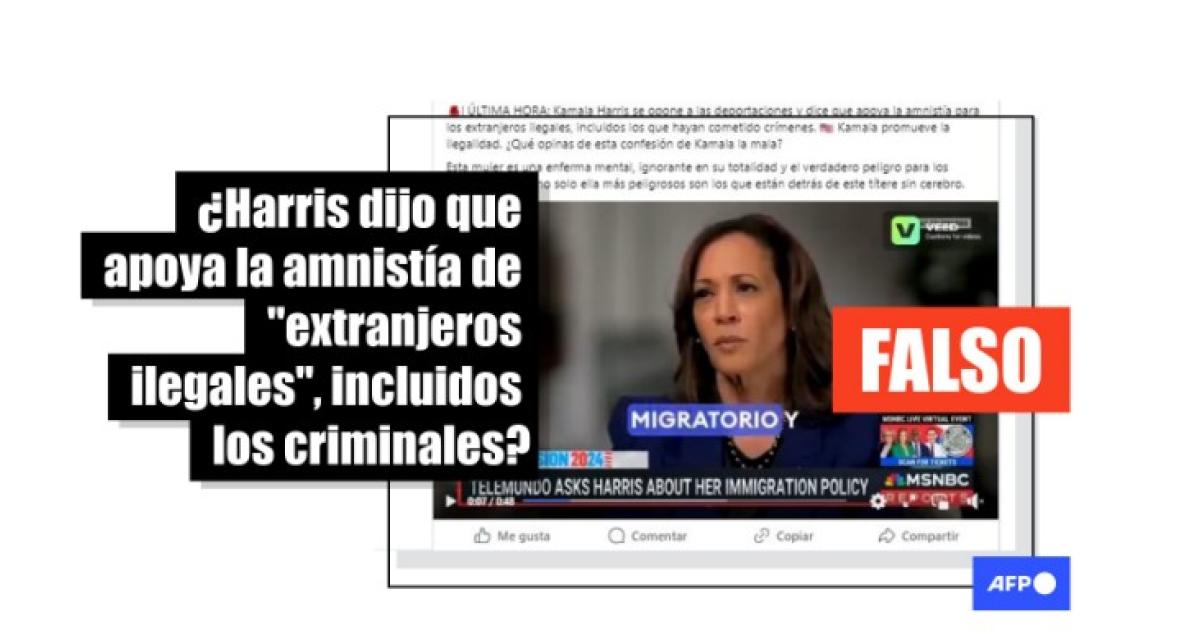 En el video de 48 segundos aparece Harris en una entrevista con el medio Telemundo. Hablando sobre seguridad fronteriza, el presentador dice que “no hay nadie, ningún demócrata, hablando de vías para obtener ciudadanía y alivio migratorio”. Harris responde que se necesita “una política migratoria inteligente y humana en Estados Unidos, que incluya una vía para obtener la ciudadanía”.