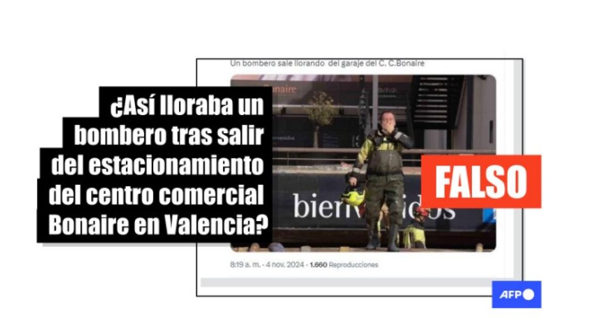 De acuerdo con usuarios en X que comparten la fotografía, el bombero “sale llorando del garaje del C. C.Bonaire”, “devastado” por lo que ha visto en su interior. En Facebook también se habla de un “hombre devastado” tras bajar al aparcamiento.