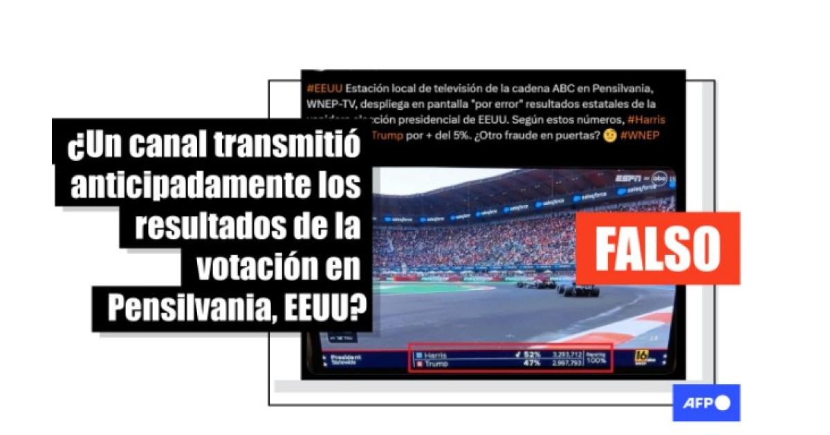 Tegna, la empresa de medios dueña de WNEP, dio a conocer que aunque los nombres y números de Kamala Harris y Donald Trump sí se transmitieron durante el Gran Premio de México, “las cifras no reflejaron ningún conteo”.
