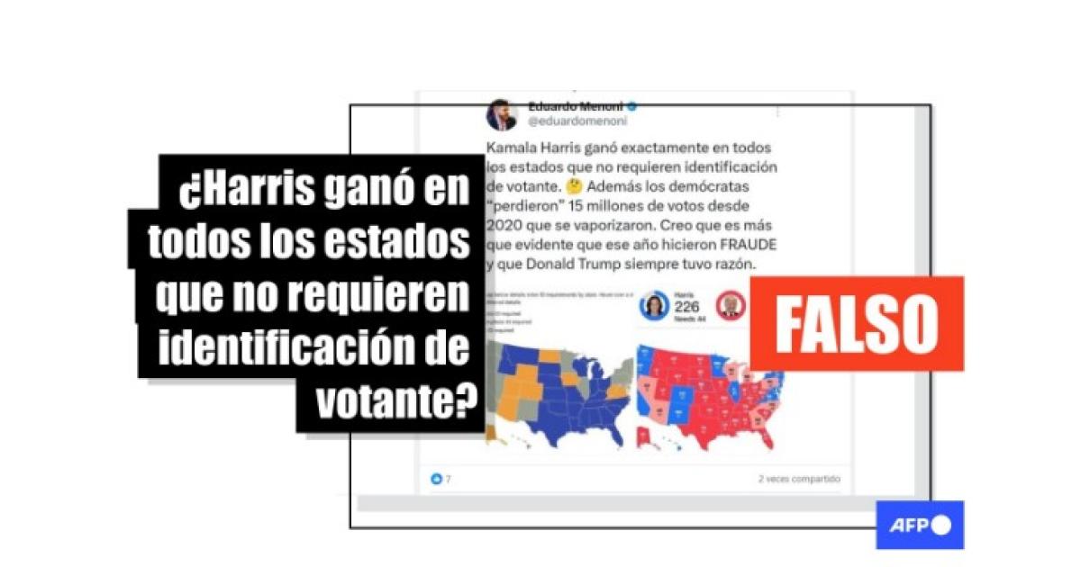 De igual modo, Barry Burden, profesor de Ciencias Políticas en la Universidad de Wisconsin-Madison, señaló que “hay varios problemas con la lógica de las publicaciones virales”, como el hecho de que Harris perdiera en Nevada, un estado que no exige identificación con fotografía.