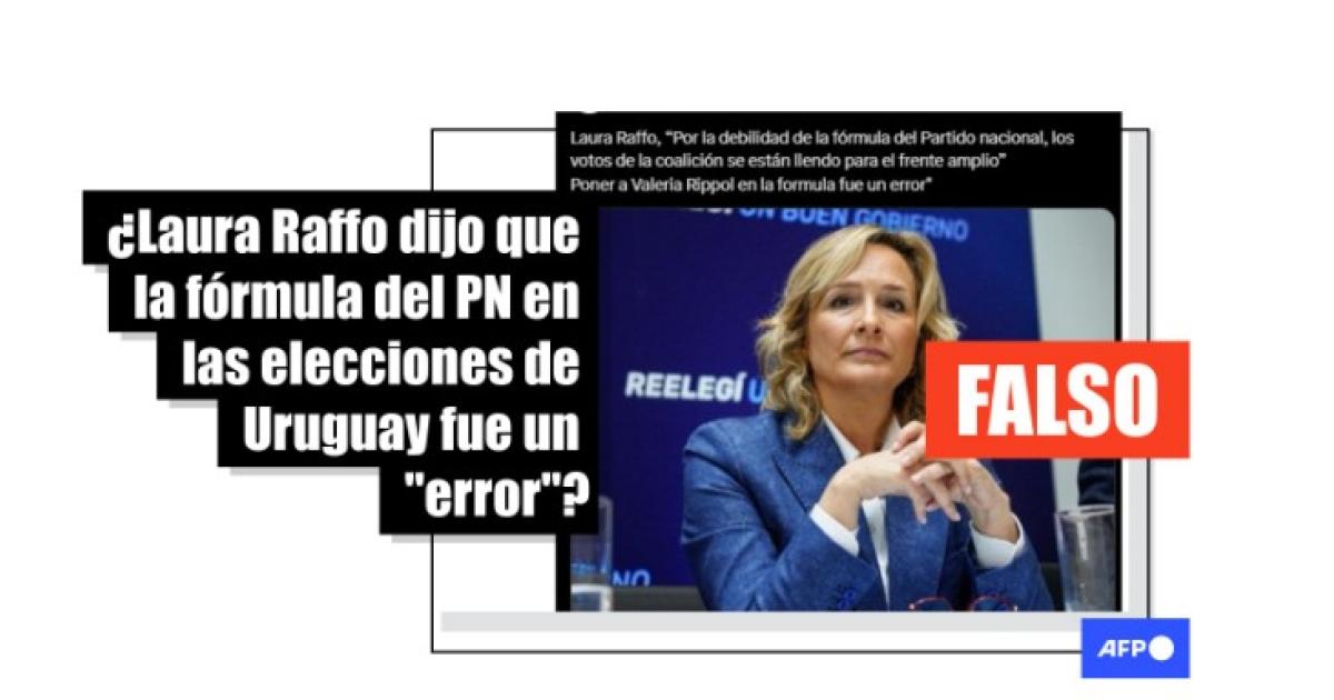 "Por la debilidad de la fórmula del Partido nacional, los votos de la coalición se están llendo (sic) para el frente amplio’", habría dicho la política uruguaya Laura Raffo, según una publicación en X del usuario “Subrayando”, cuya imagen de perfil es el logo del noticiero uruguayo Subrayado. “Poner a Valeria Rippol en la formula fue un error", culmina el mensaje, que también fue replicado en Facebook.