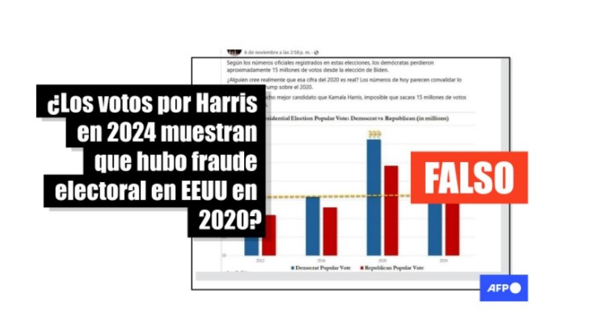 “Es un ‘misterio’ qué pasó con más de 15 millones de votantes Demócratas del 2020. Kamala no los tiene, Trump tampoco?!?”, señalan entradas en Facebook, Telegram, y X, que sugieren que es una prueba de que en 2020 hubo fraude electoral.