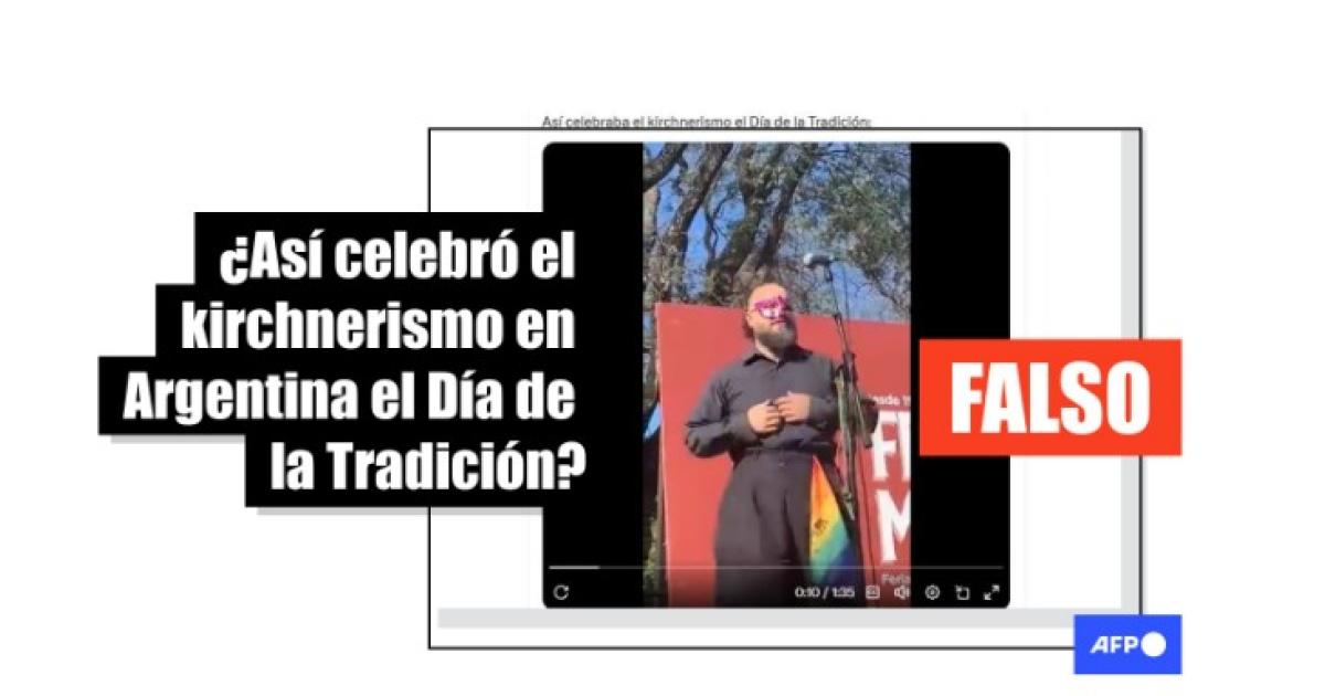 “Así celebraba el kirchnerismo el Día de la Tradición”, se lee en publicaciones de X, Facebook e Instagram junto a un video de la presentación en vivo de un grupo folclórico que lleva distintos símbolos LGBT, incluyendo una bandera y una camiseta que reza “gauche”, forma de escribir “gaucho” en lenguaje inclusivo.