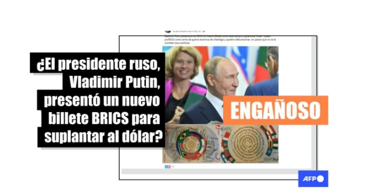 Putin ha pedido en varias ocasiones que se reduzca la dependencia de la economía rusa frente al dólar. Sin embargo, durante la cumbre no se presentó un nuevo billete o moneda para “someter” al dólar, como señalan las publicaciones en redes sociales.