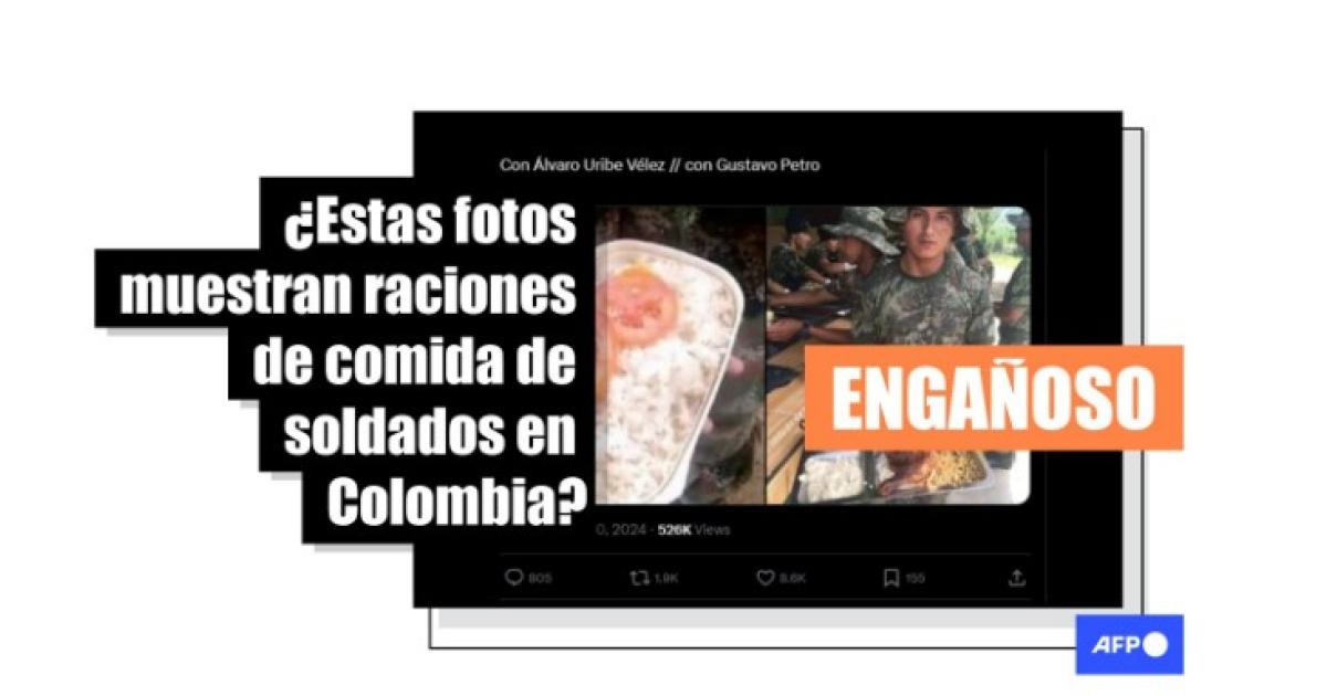 “Con Álvaro Uribe Vélez // con Gustavo Petro”, señalan publicaciones compartidas en X y Facebook, que pretenden establecer una comparación entre las supuestas raciones de comida que han recibido los soldados colombianos en distintas administraciones.