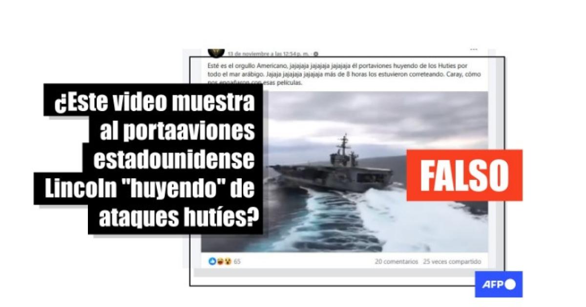 “El portaaviones estadounidense Abraham huyendo de los Huties por todo el mar arábigo, más de 8 horas los estuvieron correteando”, se lee en una publicación en X que incluye un video de lo que parece ser un buque de guerra avanzando en el mar.