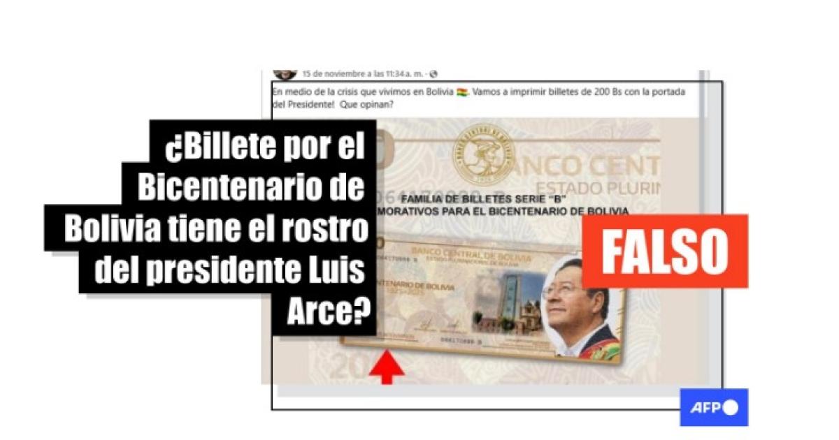 Es falso que el billete conmemorativo por el Bicentenario de Bolivia lleve el rostro de Luis Arce