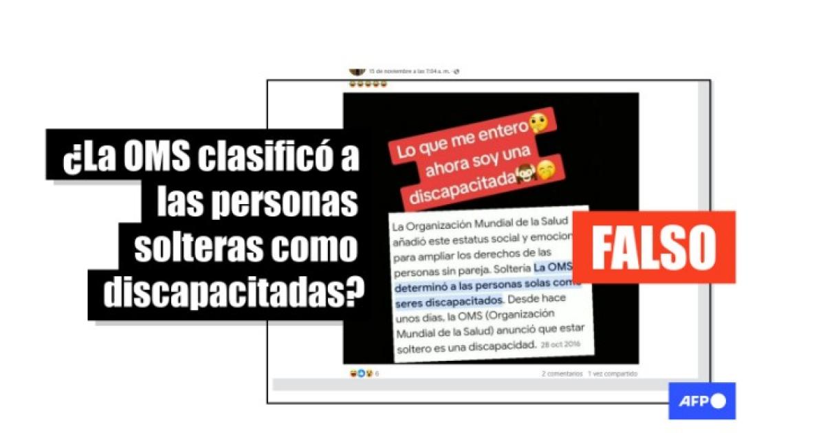 Esta no es la primera vez que se difunde desinformación relacionada con la OMS clasificando la soltería como discapacidad, en 2019 la AFP verificó publicaciones similares en inglés.