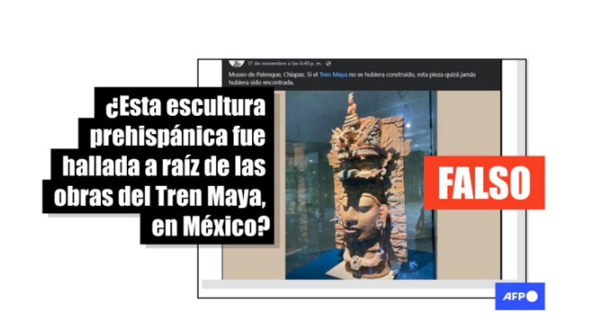Aunque el gobierno de México construyó vías que atraviesan la ciudad de Palenque, Chiapas, la pieza viralizada en redes sociales no fue descubierta allí durante los trabajos del Tren Maya.