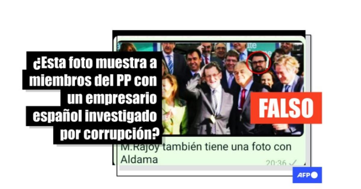 La fotografía viral muestra a miembros del PP, como Mariano Rajoy o María Dolores de Cospedal, que fue secretaria del partido, junto a varias personas. Uno de los hombres está señalado con un círculo en rojo, y la imagen circula con el mensaje: “Aldama con M. Rajoy, González Pons, Cospedal, Rita Barberá y otros chorizos del PP en una foto previa a un mitin. Que alguien se la pase a El Mundo del tal Manso, que se les debe haber pasado”.