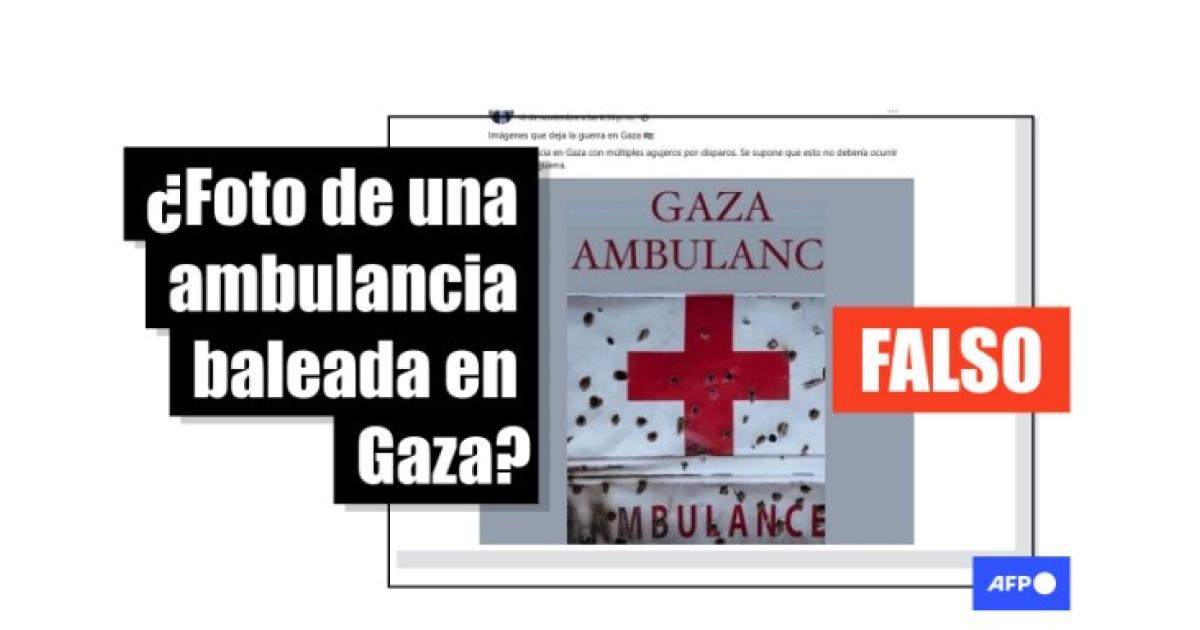 “Imágenes que deja la guerra en Gaza. Ambulancia en Gaza con múltiples agujeros por disparos. Se supone que esto no debería ocurrir en ninguna guerra”, dicen las publicaciones en Facebook, Instagram y X junto con la escena que, además, contiene la leyenda “Ambulancia de Gaza” en inglés.