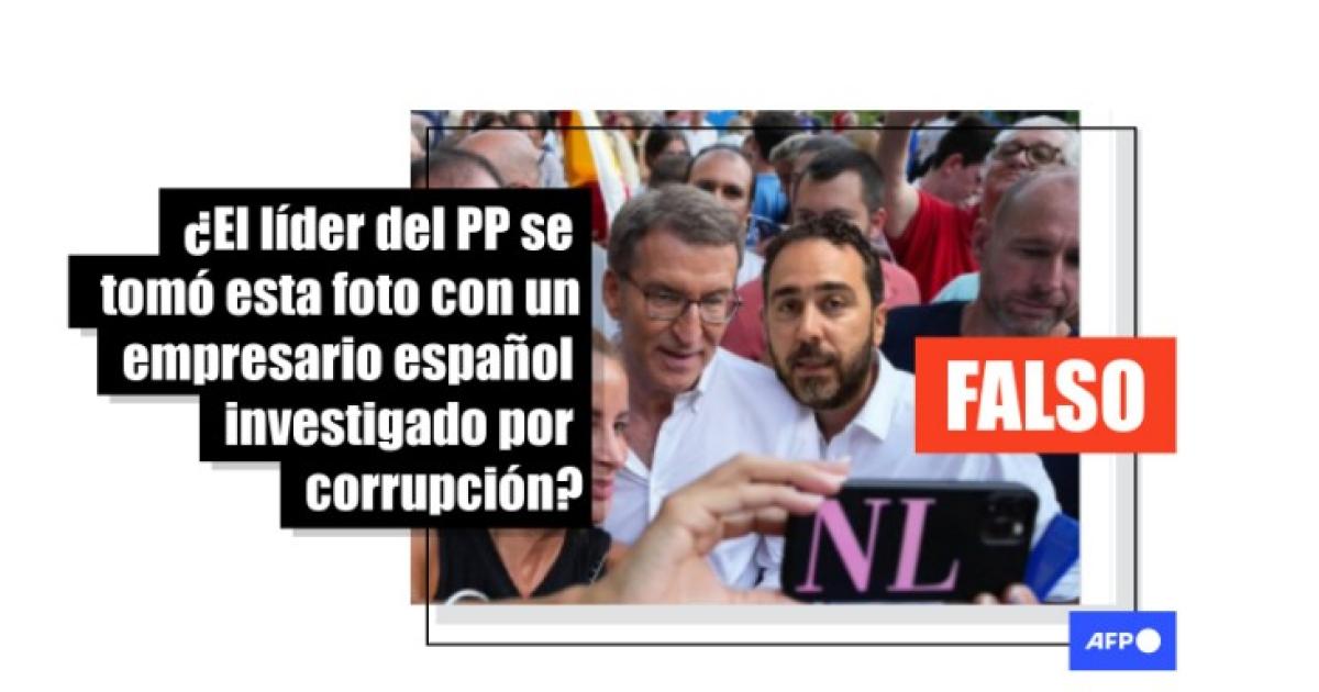 La fotografía fue alterada digitalmente para incluir el rostro de Aldama junto a Feijóo, como AFP Factual comprobó con una búsqueda inversa de la imagen en Google.