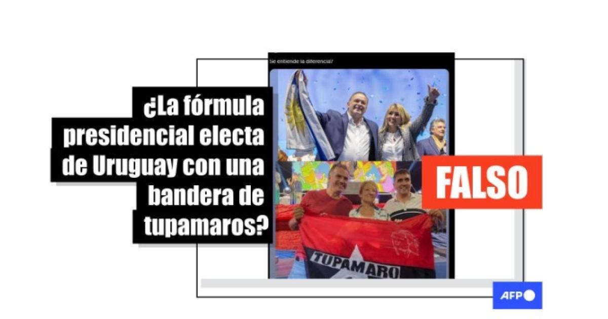 Foto de fórmula presidencial electa de Uruguay fue alterada para incluir una bandera tupamara
