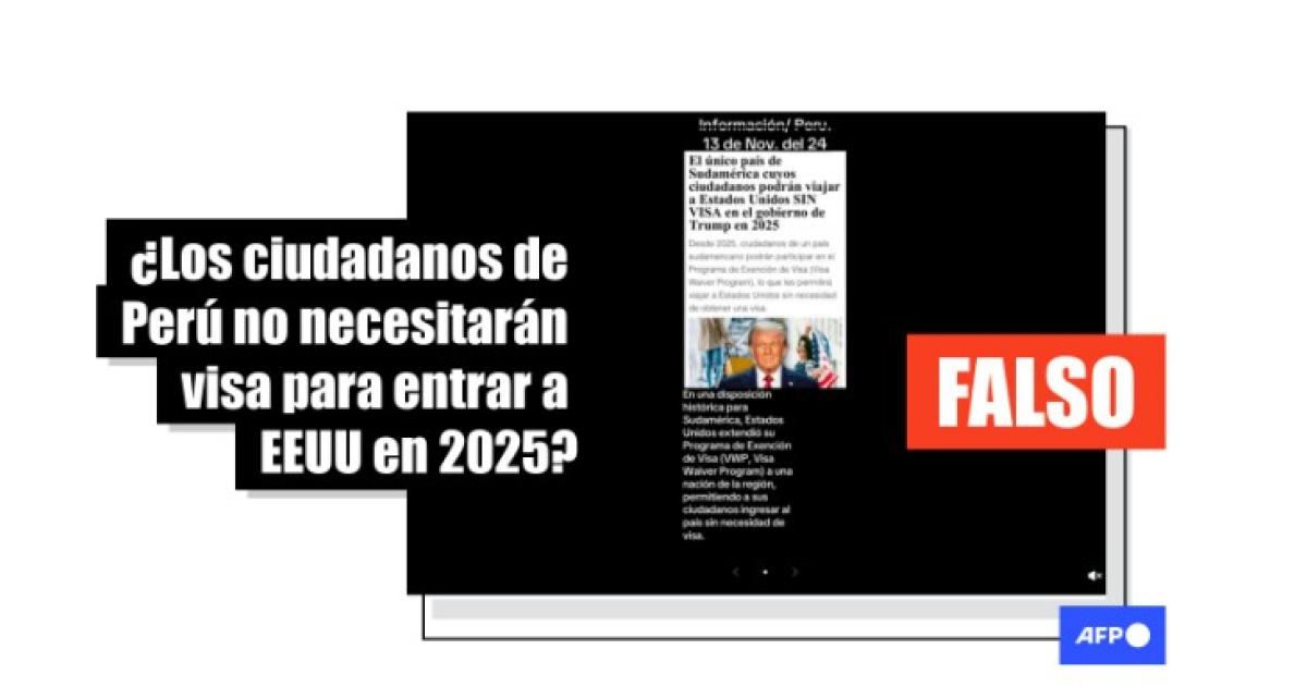 Un portavoz del Departamento de Estado estadounidense confirmó a la AFP el 29 de noviembre de 2024 que “actualmente Perú no participa en el Programa de Exención de Visas”.