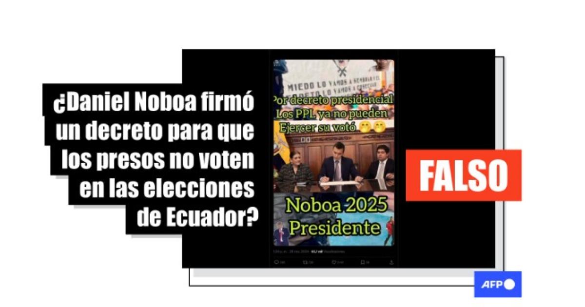 “Por decreto presidencial Los PPL [personas privadas de la libertad] ya no pueden Ejercer su votó” y “Noboa 2025”, dice una imagen compartida en X, TikTok (1, 2) y Facebook.