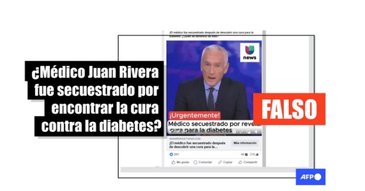 “¡El médico fue secuestrado después de descubrir una cura para la diabetes! ¿Quién se benefició de esto?”, señalan entradas en Facebook que comparten un video en el que aparece el presentador Jorge Ramos en una supuesta emisión del canal Univision. Allí anuncia, como noticia de última hora, el secuestro del doctor “Juan J. Rivera”, quien habría revelado “un remedio casero que elimina la causa de la diabetes en solo un día”.