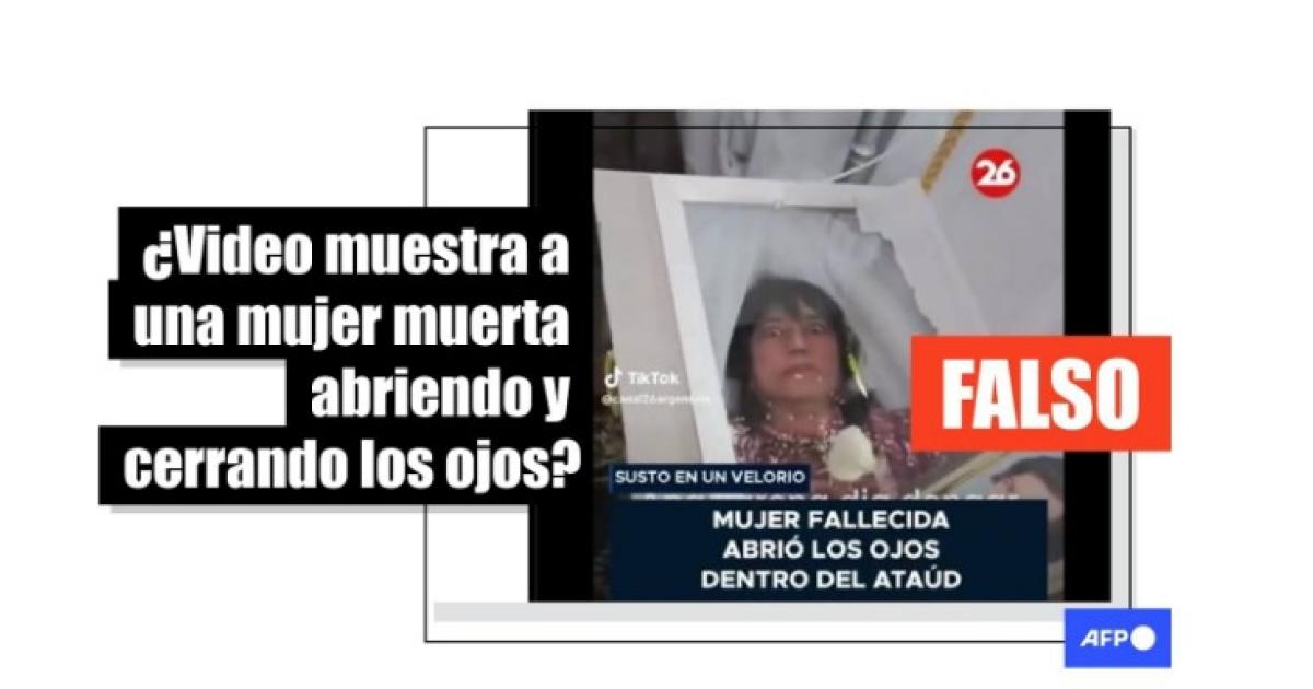 “MUJER FALLECIDA ABRE LOS OJOS DENTRO DEL ATAÚD”, asegura un usuario en Facebook, junto a un video que muestra a una mujer recostada en un ataúd, con un cristal que permite verla, cerrando y abriendo los ojos. Sobre el féretro, se observan un pollito moviendo la cabeza y un retrato encuadrado. Tras los movimientos de los ojos de la supuesta fallecida, una persona aparece y procede a abrir el ataúd.