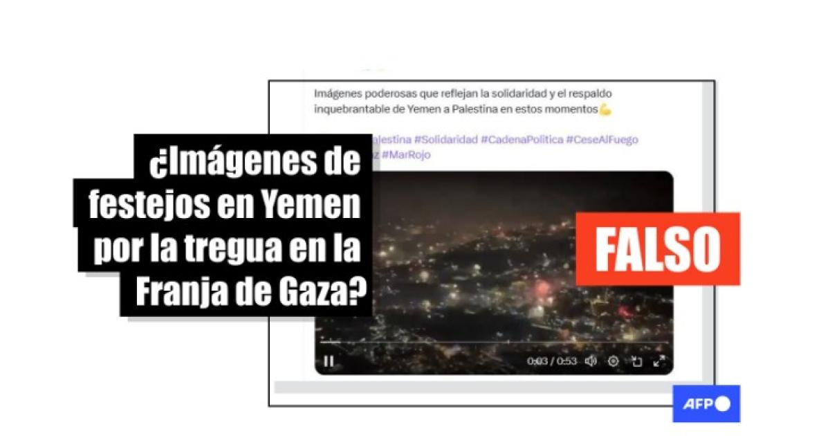 Aunque líderes mundiales aplaudieron el acuerdo entre ambas partes, las imágenes virales de fuegos artificiales sobre una ciudad supuestamente yemení no tienen relación con ese país ni con la guerra entre Hamás e Israel.